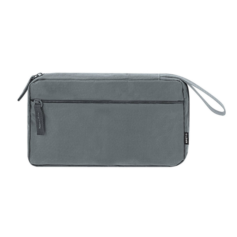 Bolsa organizadora feita de 900D RPET. Bolso principal de abertura total com duplo puxador metálico e vários bolsos interiores ideais para armazenar cabos: 3 bolsos com elásticos e 1 com fecho de zíper. Inclui também um bolso exterior com fecho de zíper invisível e uma alça para facilitar o transporte. Inclui etiqueta RPET.O material RPET é feito a partir de plástico reciclado, promovendo assim a reutilização de resíduos plásticos e contribuindo para a sustentabilidade do planeta.