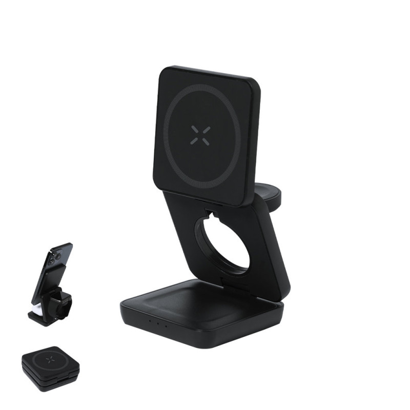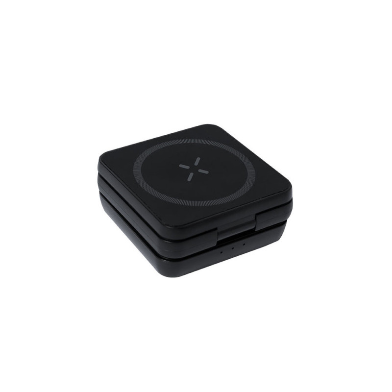 Carregador wireless magnético 4 em 1 de 15W, fabricado em ABS reciclado (RABS). Projetado para o carregamento simultâneo de smartphone, fones de ouvido, smartwatch e suporte. Um gadget tudo em um: dobrável, portátil, de tamanho compacto, muito versátil e de design funcional. Acabamento fosco com toque de borracha. Conexão por usb Tipo C -cabo incluído-.O RABS é um plástico altamente reciclável de grande resistência e com múltiplas aplicações que o tornam uma solução ecologicamente correta.Fabricado conforme os padrões RoHS e em conformidade com os seguintes requisitos de segurança:Sistema de proteção contra superaquecimento.Sistema de proteção contra sobrecarga.Sistema de bloqueio para evitar curtos-circuitos.