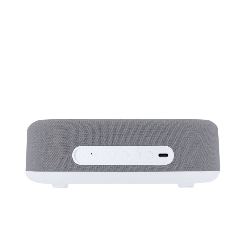 Relógio multifuncional 5 em 1. Inclui várias funções:- Carregador sem fio de 15W- Lâmpada com luz quente e intensidade regulável, ideal para criar ambientes agradáveis- Alto-falante de 5W- Função hora (12/24h) e alarme- Indicador de temperatura e dataCom tela retroiluminada e bateria de 1200 mAh. Compatível com dispositivos equipados com tecnologia de carregamento sem fio Qi. Fabricado em ABS branco em combinação com poliéster. Com entrada USB Tipo C -cabo incluído -.