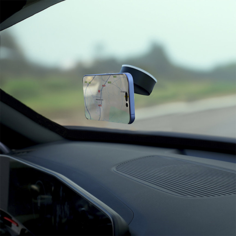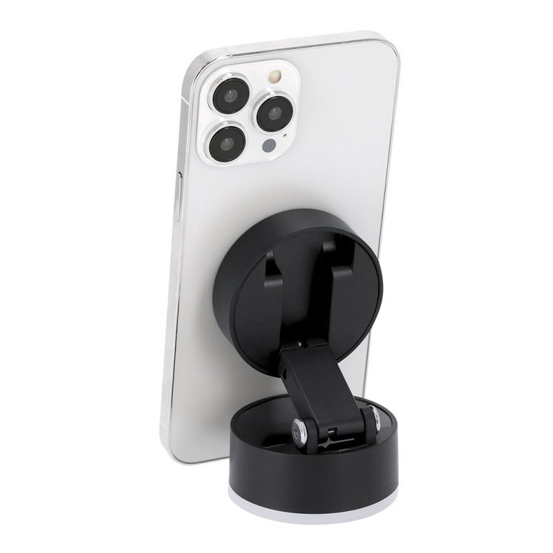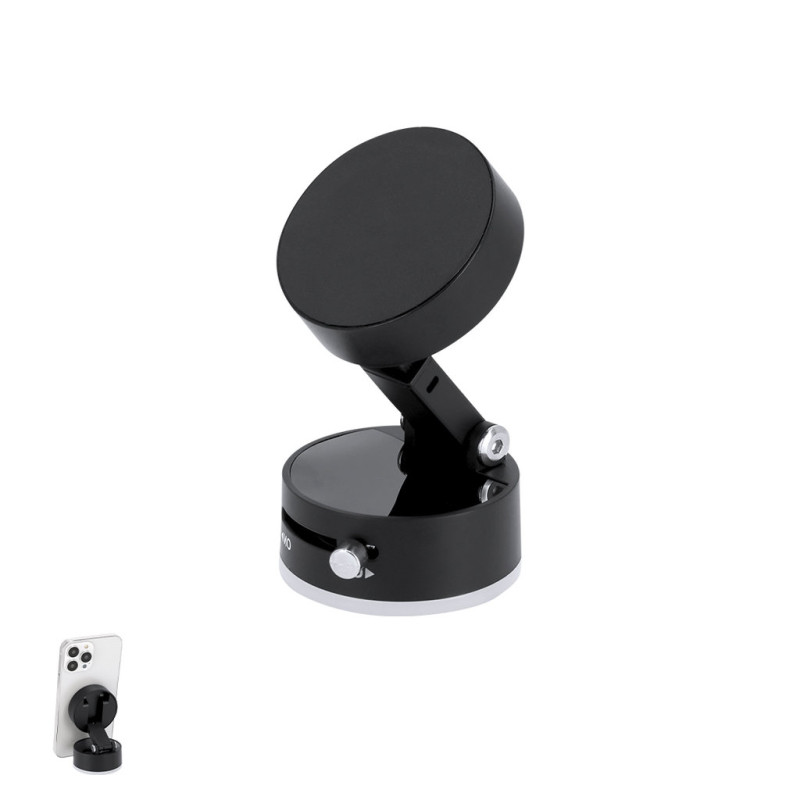 Suporte magnético para telemóvel em ABS. Fecho da ventosa com botão ON/OFF on/off. Inclui anel metálico magnético. Tem um suporte retrátil ajustável, ideal como solução para fixar o seu dispositivo de forma estável e versátil em qualquer superfície.