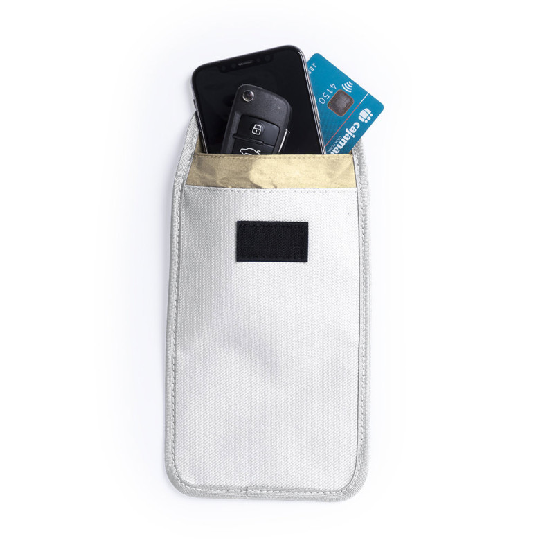 Bolsa de segurança com protecção RFID (Identificação por Radio Frequência) que mantém seguros os dados dos cartões e outros objetos. Numa vasta gama de cores e em poliéster resistente. Tamanho ideal para smartphone e pequenos objetos.