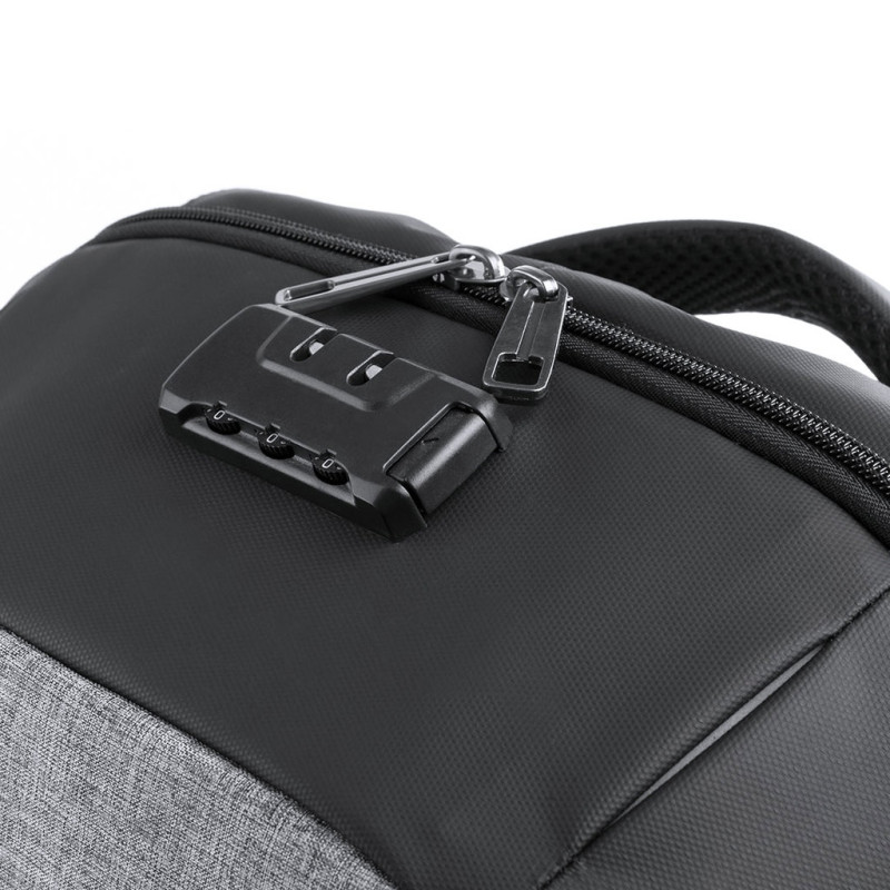 Mochila com painel de energia solar integrado em poliéster 1200D resistente. Repelente de água, com a porta de carregamento USB - PowerBank não incluído e bloqueio de segurança com senha. Compartimento principal com puxador duplo. Bolso acolchoado interno para cadernos de até 15 polegadas e comprimidos de até 10 polegadas de tamanho. Tiras de ombro e costas com preenchimento ergonômico.