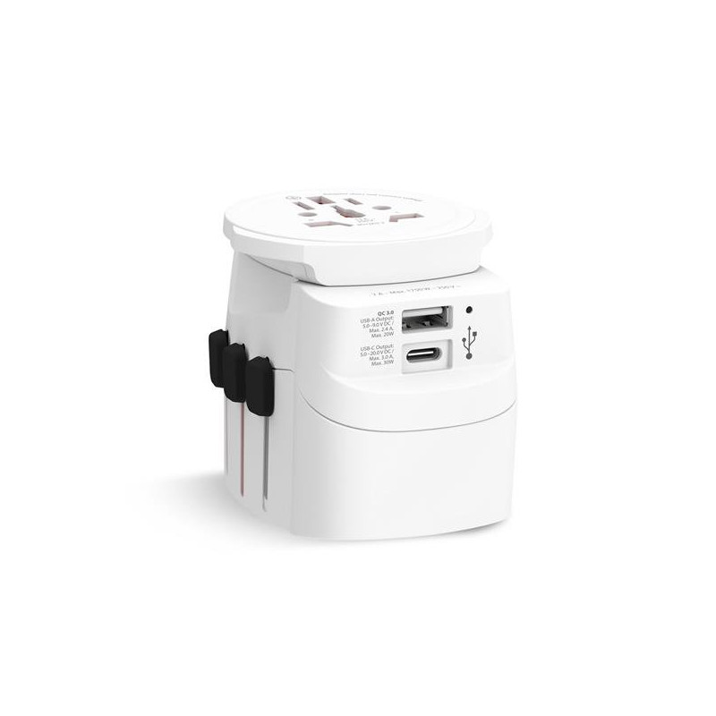 O Adaptador de Viagem SKROSS PRO Light USB 30PD oferece potência de carregamento rápido até 30 W, ideal para portáteis e dispositivos de maior consumo, além de suportar até 1750 W em tomadas de 3 polos, permitindo a utilização de aparelhos como secadores de cabelo. Compatível em mais de 200 destinos em todo o mundo - incluindo EUA, Brasil, Reino Unido, China e grande parte da Europa - a parte superior do adaptador pode ainda ser usada individualmente na maioria dos países europeus. Conta com design suíço, tensão de 100-240 V AC, corrente máxima de 7 A, fusível substituível, suporte a ligação terra e duas portas USB (Tipo-A e Tipo-C) para carregar simultaneamente dois dispositivos. Compacto, eficiente e seguro, é a solução ideal para quem viaja com frequência.