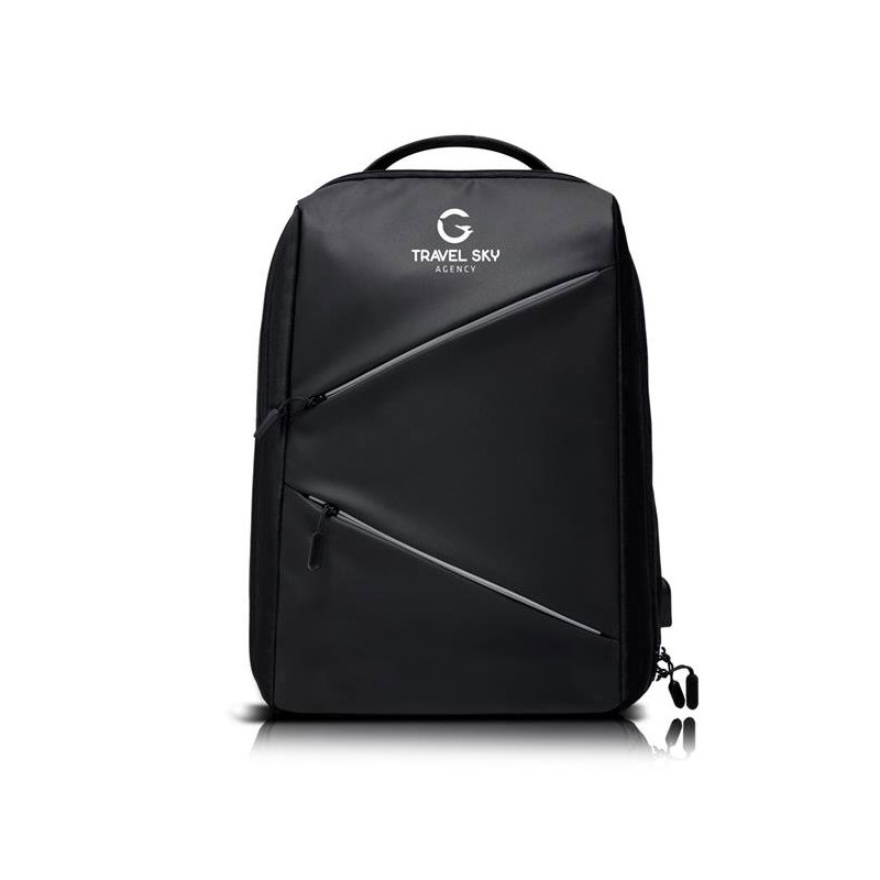 Mochila para portátil 15,6’’ com 2 fechos frontais.Mochila de um compartimento, moderna e funcional, com compartimento acolchoado para portátil. Nas costas, possui um bolso antirroubo discreto, ideal para guardar objetos de maior valor com segurança.Conta ainda com saída USB para powerbank, tecido macio, costas almofadadas para maior conforto e fita para prender em trolley, facilitando o transporte em viagens. Os fechos refletores são resistentes à água, garantindo proteção adicional em dias de chuva.No interior, inclui cabo para ligação à powerbank e vários bolsos organizadores, permitindo guardar acessórios e documentos de forma prática e acessível.Uma escolha elegante, segura e versátil para o dia a dia ou para viagem.
