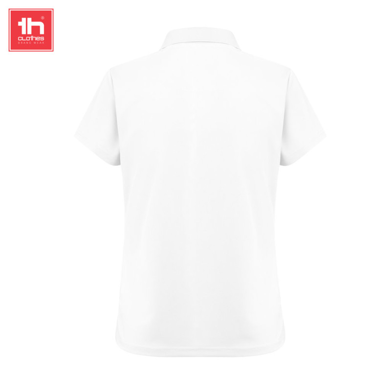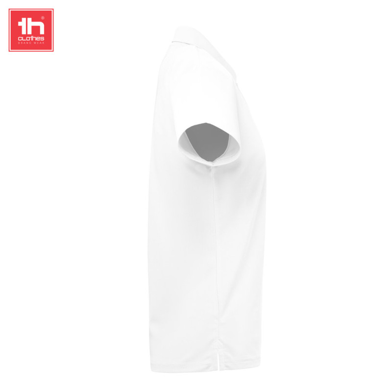Polo desportivo • Manga curta • Carcela oculta com três botões à cor e acabamento contrastante em branco* • Aberturas laterais com cor contrastante em branco* • Costura dupla nas mangas e parte inferior do artigo • Cortado e cosido • Reforço em meia lua no topo das costas • Gola em rib 1x1 • excepto na cor branco, onde o contraste é na cor preto