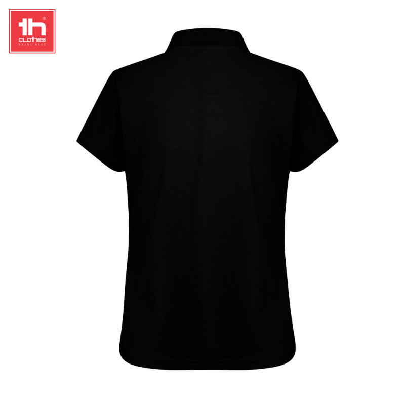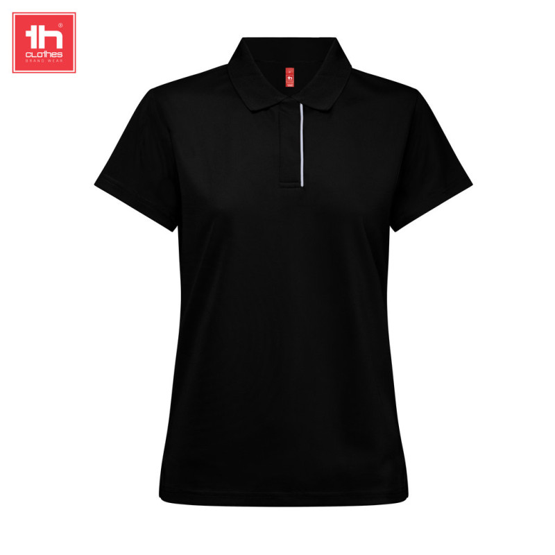 Polo desportivo • Manga curta • Carcela oculta com três botões à cor e acabamento contrastante em branco* • Aberturas laterais com cor contrastante em branco* • Costura dupla nas mangas e parte inferior do artigo • Cortado e cosido • Reforço em meia lua no topo das costas • Gola em rib 1x1 • excepto na cor branco, onde o contraste é na cor preto