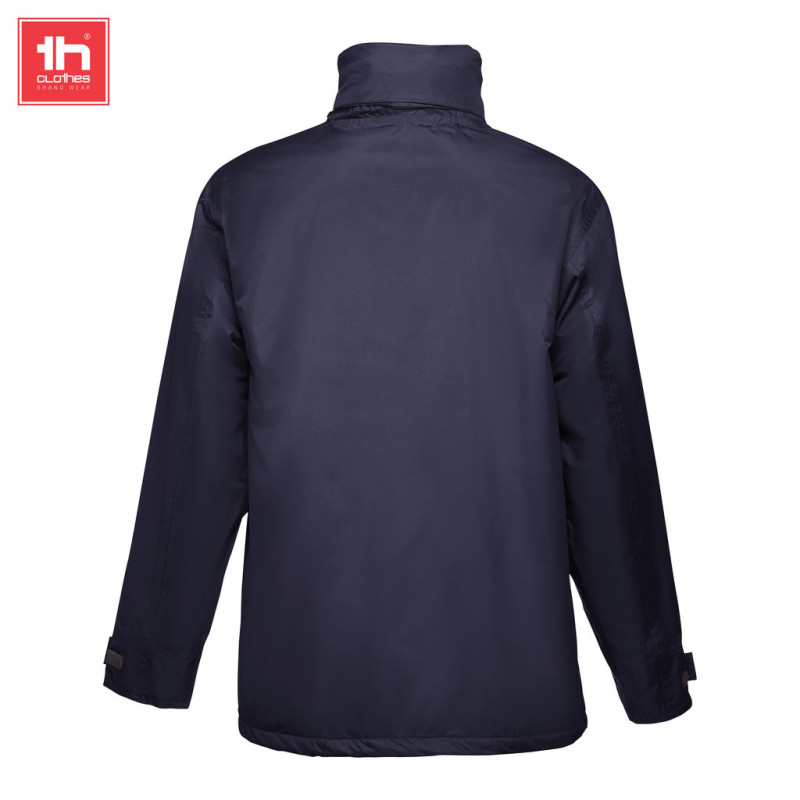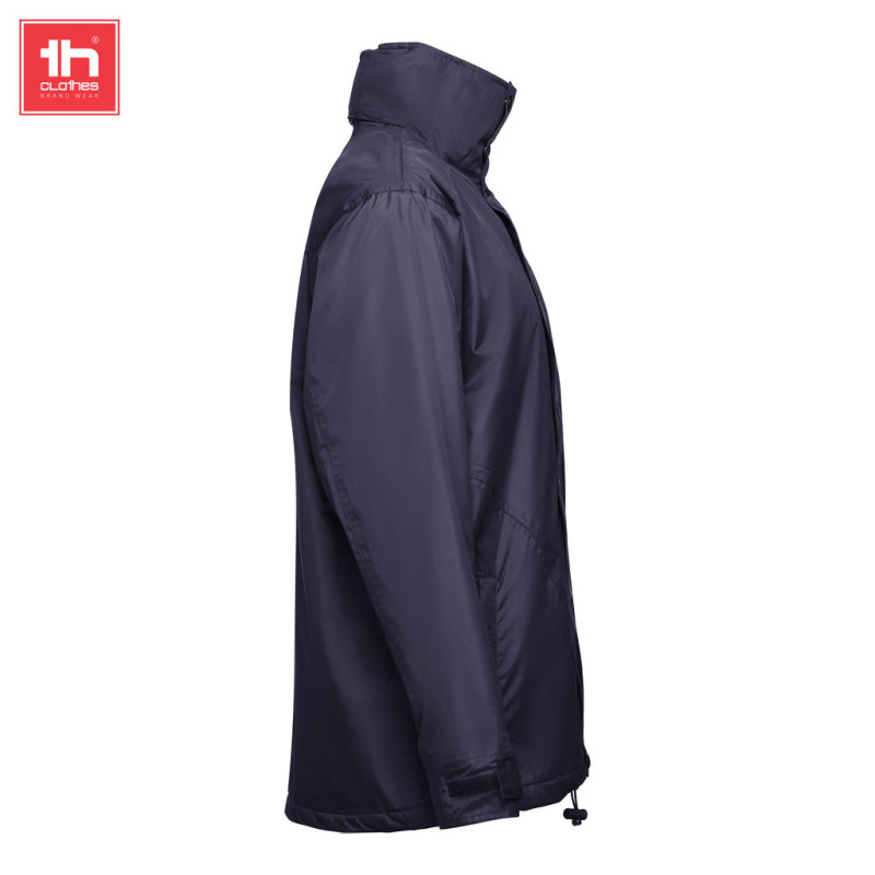 Gola forrada a malha polar preta que fecha com uma tira de velcro • Capuz dobrável na gola, ajustável através de cordões de aperto com stoppers • Abertura frontal com pala, fecho à cor, velcro e botões mola de pressão pretos • 2 bolsos exteriores com fecho e pala • 2 bolsos interiores (1 para telemóvel) com fecho em velcro • Punhos interiores em rib 2x2 • Presilha para pendurar no interior da gola • Punhos exteriores ajustáveis com tiras de velcro • Acesso com fecho na parte inferior das costas para facilitar a personalização • Abertura com fecho YKK na cor do artigo • Costuras Termosseladas • Corte moderno