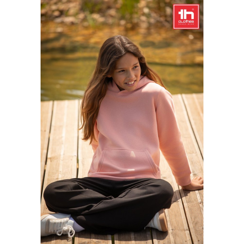 Interior cardado • Rib 1x1 nos punhos e bainha • Bolso marsupial • Capuz segundo as normas de segurança da União Europeia • Capuz forrado com jersey • Tratamento enzimático