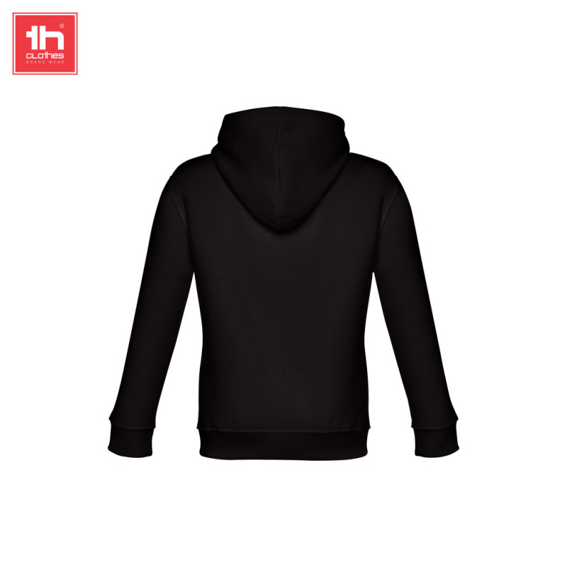Interior cardado • Rib 1x1 nos punhos e bainha • Bolso marsupial • Capuz segundo as normas de segurança da União Europeia • Capuz forrado com jersey • Tratamento enzimático