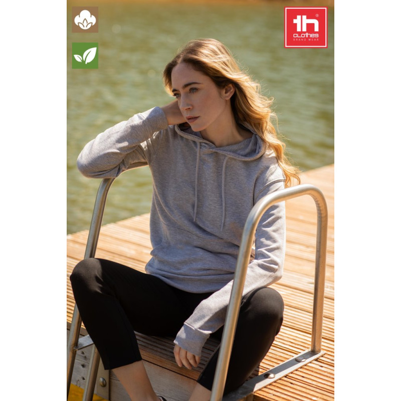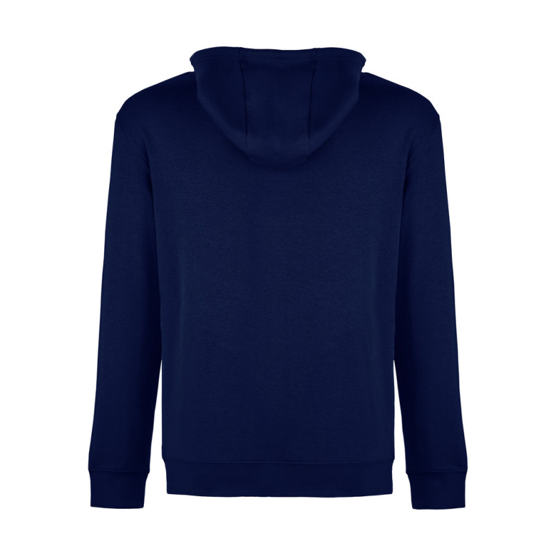 Sem carda • Rib 1x1 nos punhos e parte inferior do artigo • Ilhós bordados • Bolso marsupial • Capuz de 3 painéis e cordão de aperto com agulhetas na cor do artigo • Forro do capuz em french terry • Cortada e cosido • Tratamento enzimático
