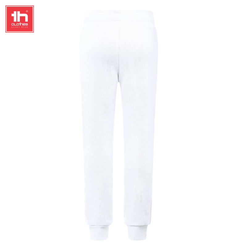 French terry • Cintura elástica com cordões de aperto na cor do artigo • Cintura e parte inferior em rib 1x1 • Dois bolsos laterais com fechos invisivéis • Bolsos com costuras reforçadas