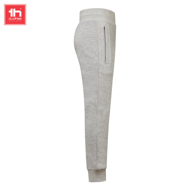 French terry • Cintura elástica com cordões de aperto na cor do artigo • Cintura e parte inferior em rib 1x1 • Dois bolsos laterais com fechos invisivéis • Bolsos com costuras reforçadas