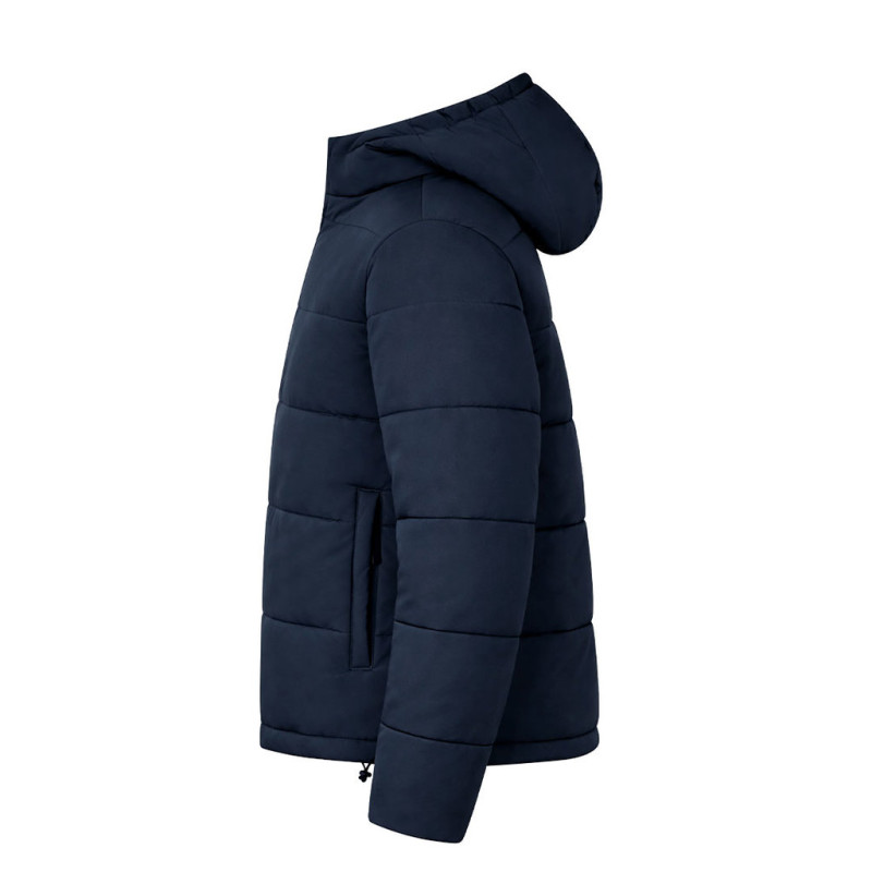 Casaco Parka, com capuz, em material quente e macio 100% poliéster. Feito de material leve, resistente ao vento e à água. Design elegante de construção horizontal e acolchoada, com capô fixo integrado. Fecho frontal duplo e ganchos. Bolsos laterais com puxadores a condizer e cordão ajustável na bainha. Disponível nos tamanhos XS, S, M, L, XL, XXL.