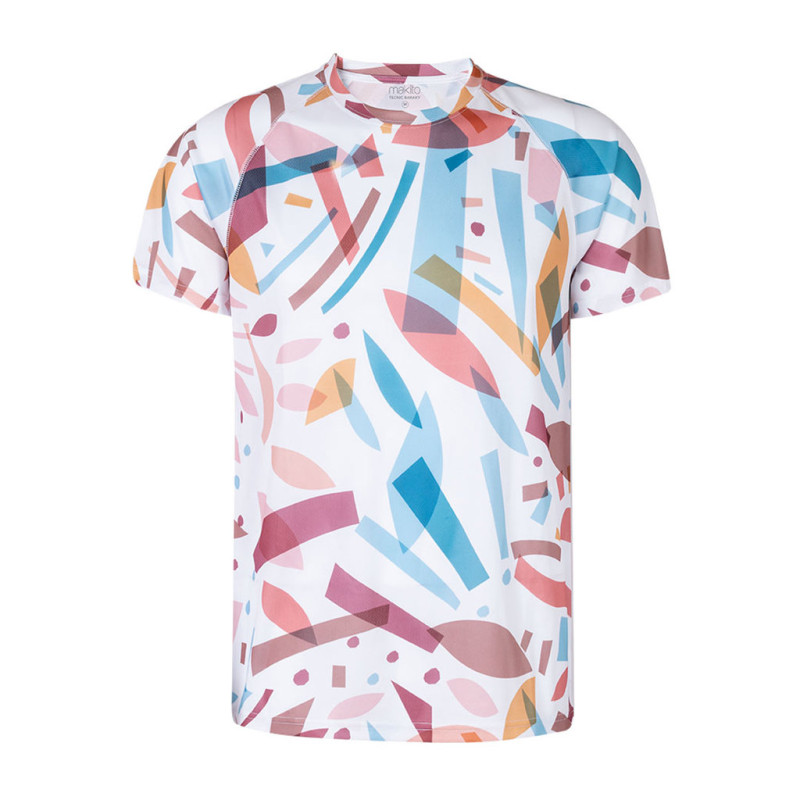 T-shirt técnica para adulto com inovador e original estampado. Confecionada em poliéster de 135 g/m2, transpirável e de toque suave. Mangas ranglan, gola redonda e disponível nos tamanhos XS, S, M, L, XL, XXL.