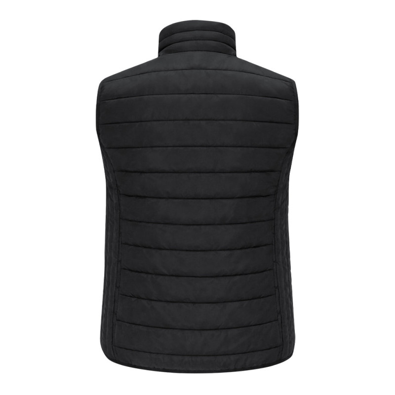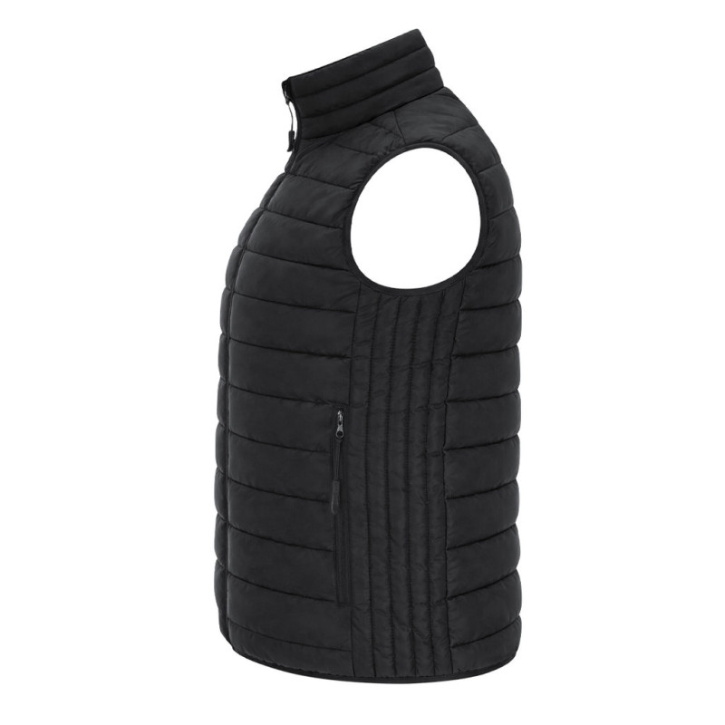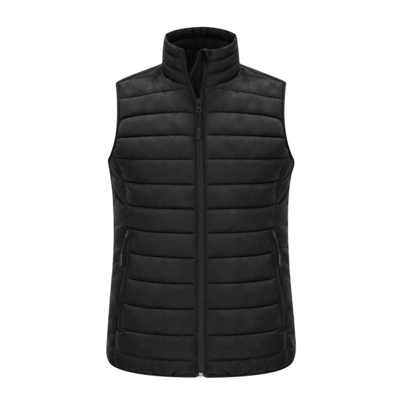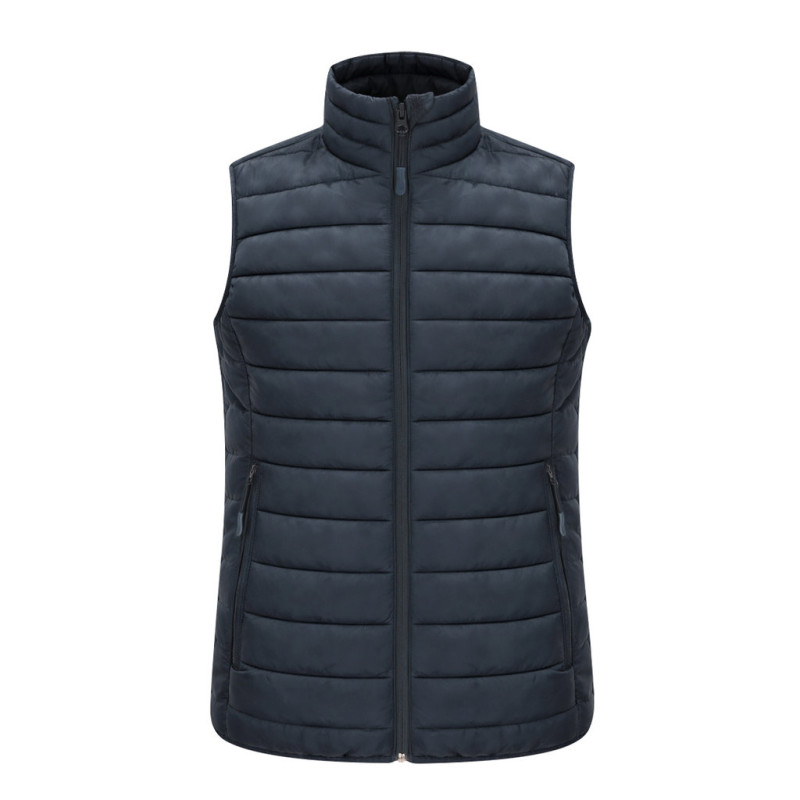 Colete acolchoado feminino em material extra leve, compacto e ajustado. À prova d'água e corta-vento, com acolchoamento macio e forro interno. Fecho de correr invertido e puxador de fecho a condizer. 2 bolsos laterais com fechos de correr e puxador a condizer, e 2 bolsos interiores. Cintura elástica e cavas com vivo elástico a condizer. Inclui uma prática bolsa de transporte.