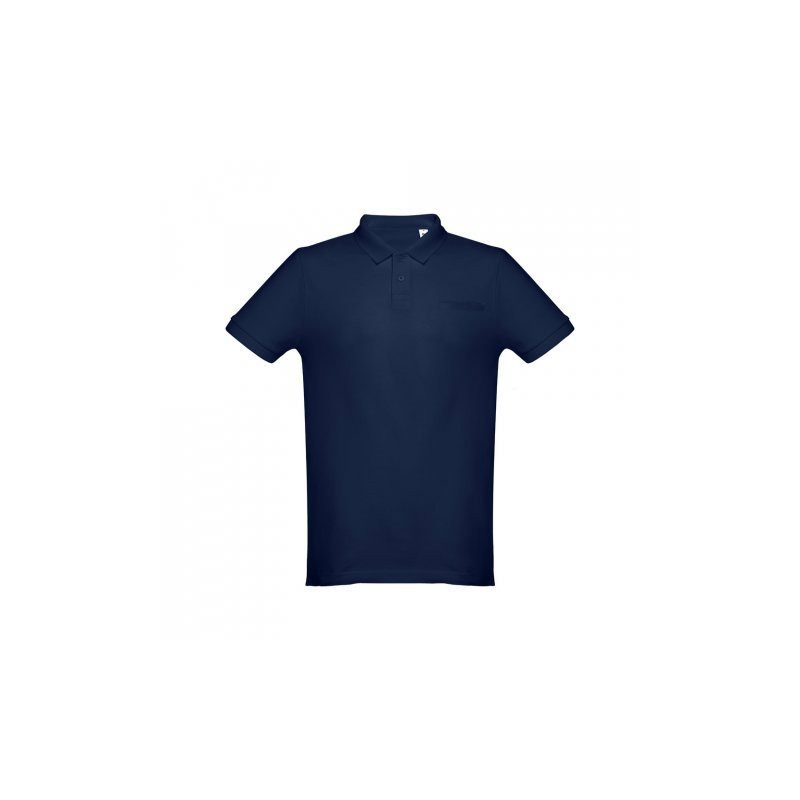 Polo de manga curta para homem em malha piqué 100% algodão cardado (195 g/m²) (cor 183: 85% algodão/15% viscose). Com gola estilizada e mangas em Rib, tendo a gola fita de reforço em piqué. Carcela reforçada com 2 botões à cor (botão suplente inserido na costura interior). Corte moderno com bolso de vivo simples no peito. Peça cortada e cosida com pequenas aberturas laterais na parte inferior do polo. Tamanhos: S, M, L, XL, XXL