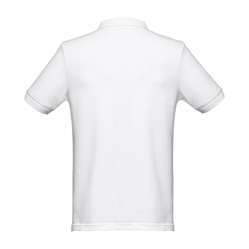 Polo de manga curta para homem em malha piqué 100% algodão cardado (240 g/m²). De corte regular com gola e mangas em Rib e fita de reforço na gola em malha piqué. Carcela reforçada com 3 botões à cor (botão suplente inserido na costura interior). Peça cortada e cosida com pequenas aberturas laterais na parte inferior do polo. Etiqueta visível removível. Tamanhos: S, M, L, XL, XXL