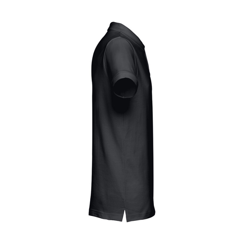 Polo de manga curta para homem em malha piqué 100% algodão cardado (195 g/m²) (cor 183: 85% algodão/15% viscose). Com gola estilizada e mangas em Rib, tendo a gola fita de reforço em piqué. Carcela reforçada com 2 botões à cor (botão suplente inserido na costura interior). Corte moderno com bolso de vivo simples no peito. Peça cortada e cosida com pequenas aberturas laterais na parte inferior do polo. Tamanhos: S, M, L, XL, XXL