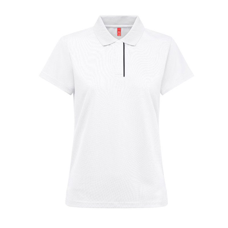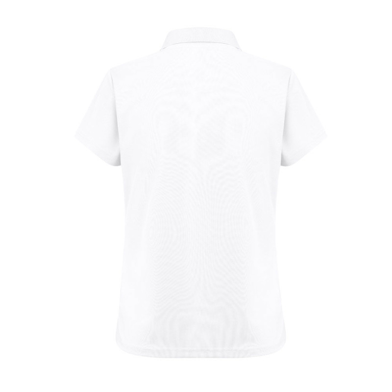 Polo técnico de manga curta para senhora em malha piqué 100% poliéster reciclado (180 g/m²). Este polo contém gola em rib 1x1 e costura dupla nas mangas e parte inferior. Carcela reforçada com 3 botões à cor com acabamento em cor preta. Peça cortada e cosida com pequenas aberturas laterais na parte inferior do polo e com acabamento em cor Preta. Tamanhos: XS, S, M, L, XL, XXL