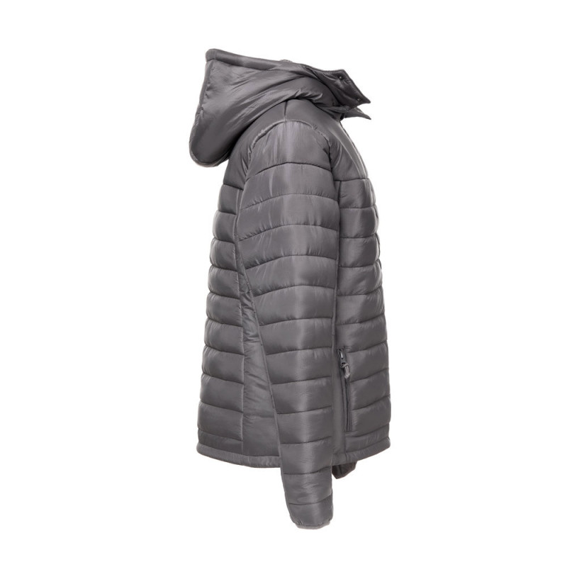 Casaco com capuz para mulher em ripstop 100% nylon reciclado (350 g/m²), e interior é resguardado em tafetá 100% nylon reciclado (350 g/m²) para um maior conforto na sua utilização. O capuz é acolchoado e apresenta diferentes funcionalidades: banda elástica, 2 botões de mola de pressão e fecho para ser removido. Abertura frontal com fecho YKK® - marca que recorre a equipamentos modernos e com elevado controlo de qualidade - e puxador. Contém 2 bolsos frontais com fecho e puxador e 2 bolsos interiores com fecho aderente. Na parte inferior das costas contém um acesso com fecho que facilita a personalização. Tamanhos: XS, S, M, L, XL, XXL