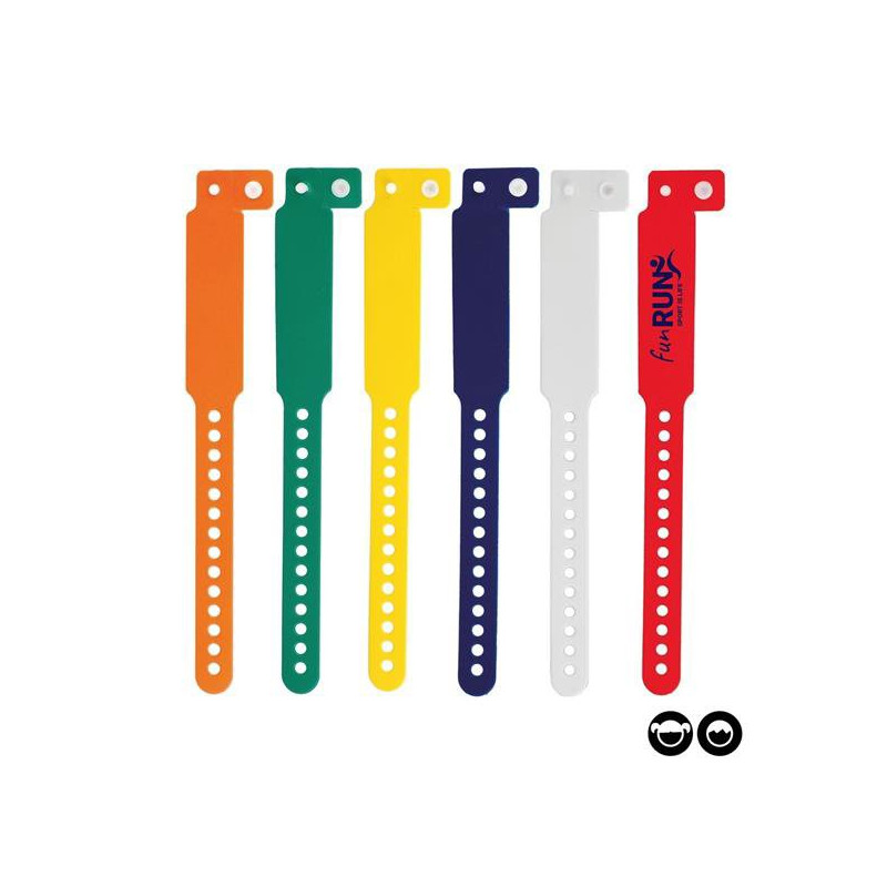 Pulseira de identificação inviolável de criança, em vinil. Para as festas, eventos ou locais onde precisa de controlar as entradas, apresentamos-lhe a opção de pulseira em vinil, resistente à água e inviolável. Personalize-a e tenha um controlo que se pode tornar numa recordação. Em gama de cores variadas. Tamanho infantil.