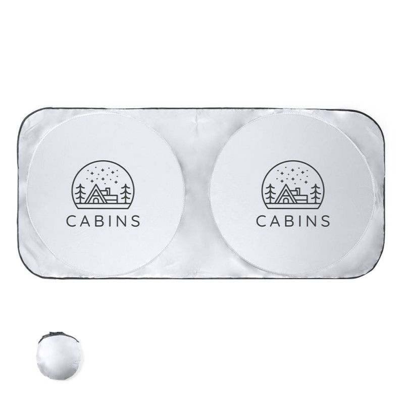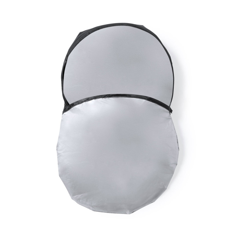 Original parasol dobrável em resistente poliéster prateado. Leve e nas medidas 150 x 70 cm, válido para automóveis e furgonetas. Costuras reforçadas, com fácil sistema de dobragem e bolsa individual a condizer. Apresentação desdobrado em prancha para fácil impressão, com bolsas à parte.