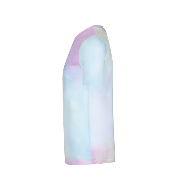 T-shirt unisexo com estampado multicolor efeito arco-íris. Confecionada em 100% algodão penteado Ring Spun de 150g/m2. Toque suave e corte moderno. Gola redonda estreita em canelado 2x2. Dupla costura na bainha e nas mangas para uma maior durabilidade e resistência ao uso intensivo. Etiqueta facilmente removível. Disponível nos tamanhos XS, S, M, L, XL e XXL.