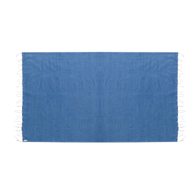 Pareo toalha de 180g/m2 em combinação de algodão reciclado e RPET. O material RPET é feito a partir de plástico reciclado, promovendo a reutilização de resíduos plásticos e ajudando à sustentabilidade do planeta.