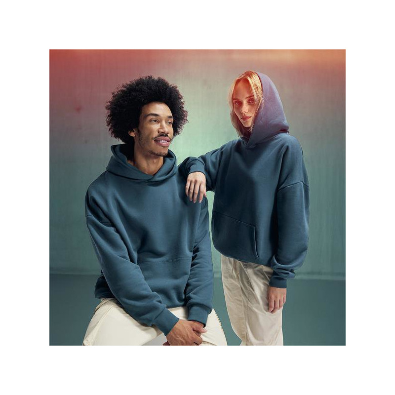 A B&C Influence Hoodie é a escolha perfeita para quem quer destacar o seu estilo urbano. Com um design oversized e capuz tipo capa, oferece um toque moderno e proteção extra, refletindo a tendência do streetwear contemporâneo. Fabricado com 80% algodão ring-spun pré-encolhido e 20% poliéster reciclado, este hoodie garante durabilidade e excelente personalização, graças à face 100% algodão. O capuz sem cordões e os ombros caídos proporcionam um ajuste descontraído e moderno.Com tecnologia B&C PST (Perfect Sweat Technology), o tecido de 350 GSM oferece uma sensação robusta e luxuosa, enquanto o bolso canguru proporciona conforto e praticidade. Disponível em 9 tamanhos (XS-5XL) e 6 cores, é ideal para merchandising, moda e projetos de impressão.Sustentável, cada hoodie contém, em média, 11 garrafas PET recicladas (550 ml), alinhando-se com práticas responsáveis. A solução "B&C No Label" facilita o rebranding, tornando-o perfeito para marcas que procuram personalização e qualidade. A B&C Influence Hoodie combina estilo, conforto e sustentabilidade numa peça única.