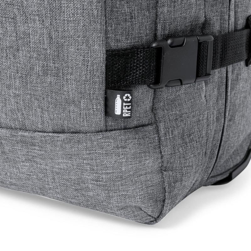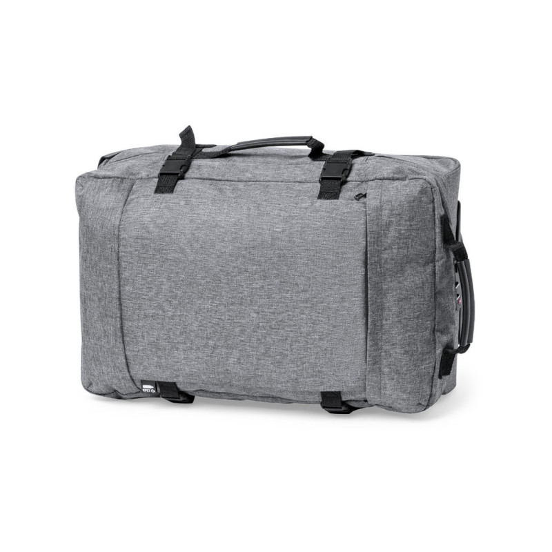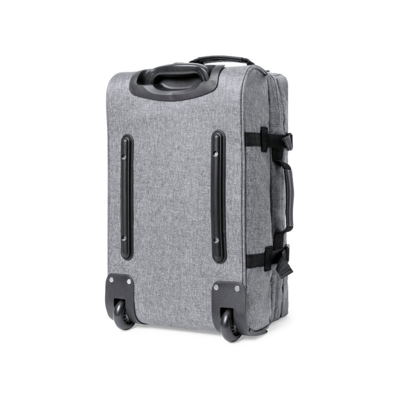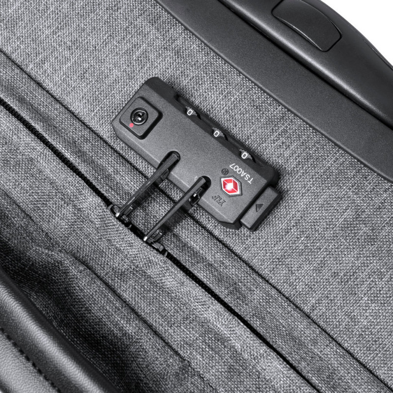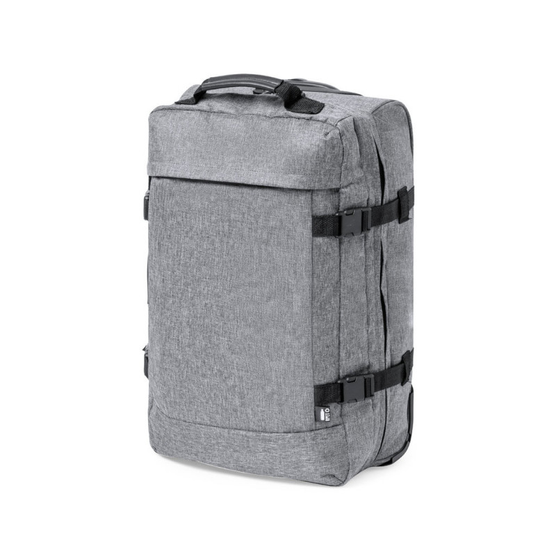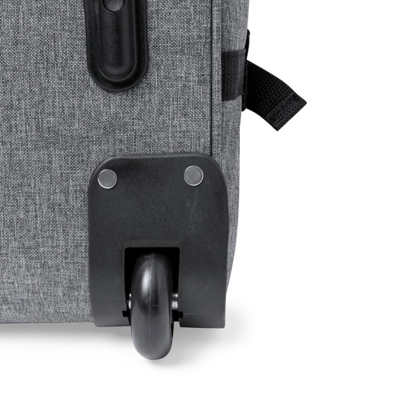 Trolley de linha nature fabricado em resistente 300D RPET. Compartimento principal com fecho de correr de duplo puxador conforme os padrões TSA -Administração da Segurança no Transporte-, que permite às autoridades de alfândegas inspecionar o conteúdo da bagagem sem ter que forçar ou romper o fecho, usando uma chave especial à disposição da autoridade. Interior forrado e com fitas elásticas de fixação. Exterior com 2 fitas ajustáveis, fechos de fivela, bolso frontal com fecho de correr invisível e 2 asas acolchadas de transporte. Mecanismo extensível metálico em preto, com cómoda asa de transporte e 2 rodas. Distintivo RPET na etiqueta exterior.