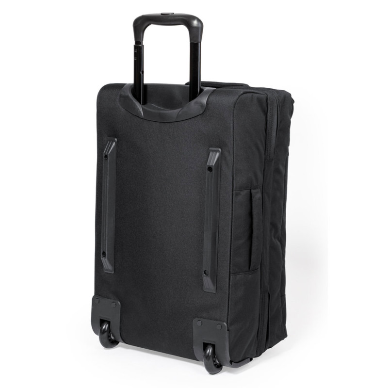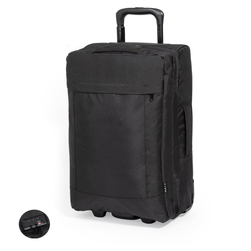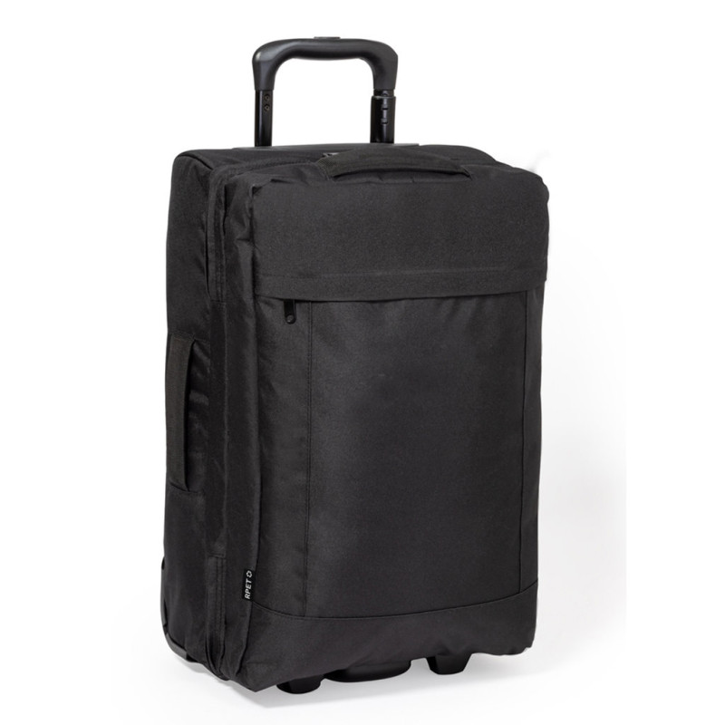 Trolley fabbricado em resistente RPET 600D. Compartimento principal com fecho de correr duplo compatível com TSA (Transportation Security Administration), que permite às autoridades aduaneiras inspecionar o conteúdo da bagagem sem ter que forçar ou quebrar a fechadura, utilizando uma chave especial à disposição da autoridade.Interior forrado e também organizador na área central. Exterior com bolso frontal com fecho de correr invisível e 2 alças de transporte acolchoadas. Mecanismo metálico expansível em preto, com alça de transporte confortável e 2 rodas. Etiqueta exterior com logotipo RPET.O material RPET é elaborado a partir de plástico reciclado, para assim promover a reutilização de resíduos plásticos e ajudando a sustentabilidade do planeta.