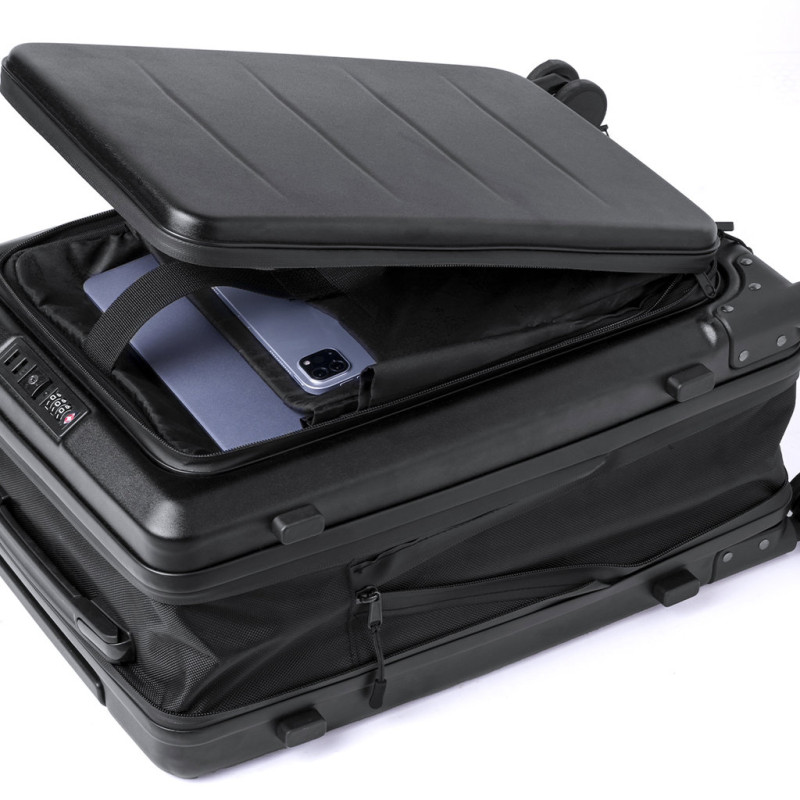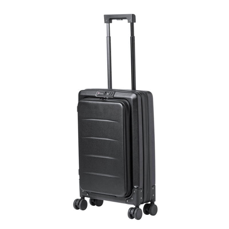 Prático trolley dobrável com 4 rodas giratórias, em ABS rígido. Com a possibilidade de poder aumentar a sua capacidade através da sua parte central extensível, com fecho de correr duplo. Equipado com um bolso almofadado para um computador portátil até 15 polegadas e um bolso para um tablet até 10 polegadas na parte da frente. Fecho padrão TSA (Transportation Security Administration), que permite às autoridades aduaneiras inspecionar o conteúdo da bagagem sem ter de forçar ou partir a fechadura, através de uma chave especial à disposição da autoridade.