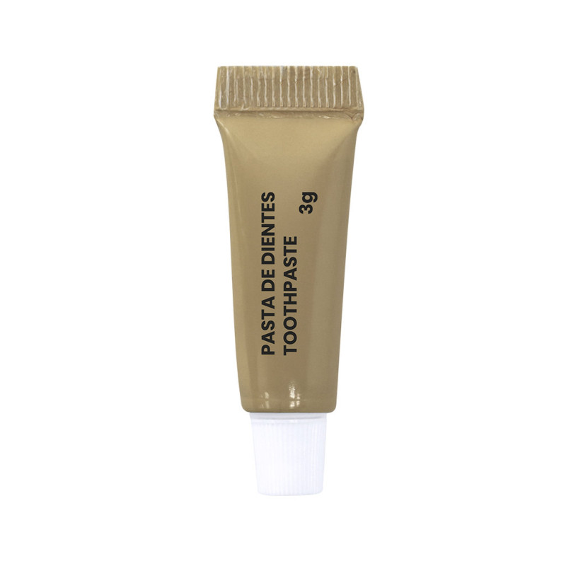 Conjunto dental com escova de dentes e pasta de dente. Conteúdo:Escova de dentes fabricada em bambu.Pasta de dente incluída em tubo de 3 gr, com tampa de rosca.Em cores naturais e apresentado em estojo individual de papel reciclado.Materiais como o Bambú promovem a utilização de matérias-primas naturais reduzindo as emissões poluentes. Além disso, o bambu provém de uma planta de grande resistência e versatilidade, com crescimento e regeneração rápida, sendo uma excelente alternativa ao uso de madeira tradicional.