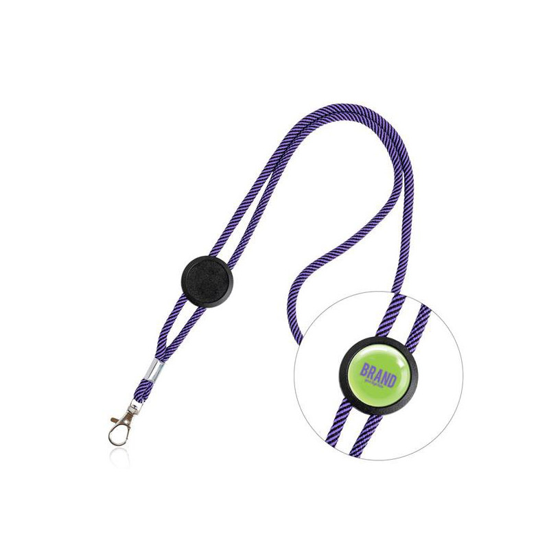 Lanyard tubular em poliéster, ajustável e mosquetão. Esta lanyard destaca-se pelo seu design tubular, conferindo-lhe um toque moderno e descontraído. O ajustável em plástico foi especialmente desenhado para personalização através de resina. Adicione o seu logotipo, slogan ou design exclusivo para criar uma peça única que reflete a identidade da sua marca. Para tornar a personalização mais fácil, pode adquirir a nossa resina 370487, criada especialmente para este ajustável.