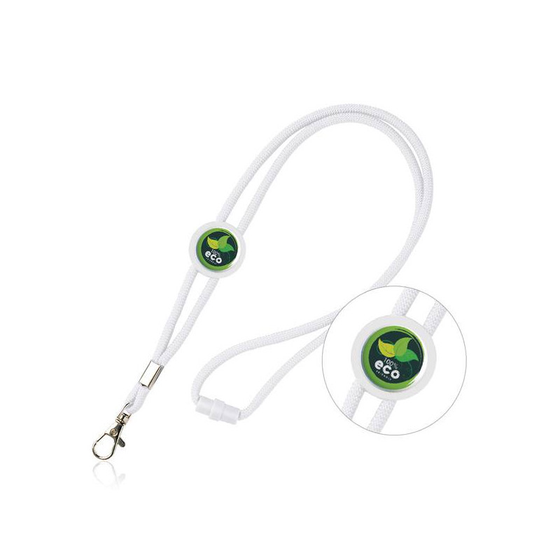 Lanyard tubular em terylene, ajustável e mosquetão. Esta lanyard destaca-se pelo seu design tubular, conferindo-lhe um toque moderno e descontraído. O ajustável em plástico foi especialmente desenhado para personalização através de resina. Adicione o seu logotipo, slogan ou design exclusivo para criar uma peça única que reflete a identidade da sua marca. Para tornar a personalização mais fácil, pode adquirir a nossa resina 370487, criada especialmente para este ajustável.