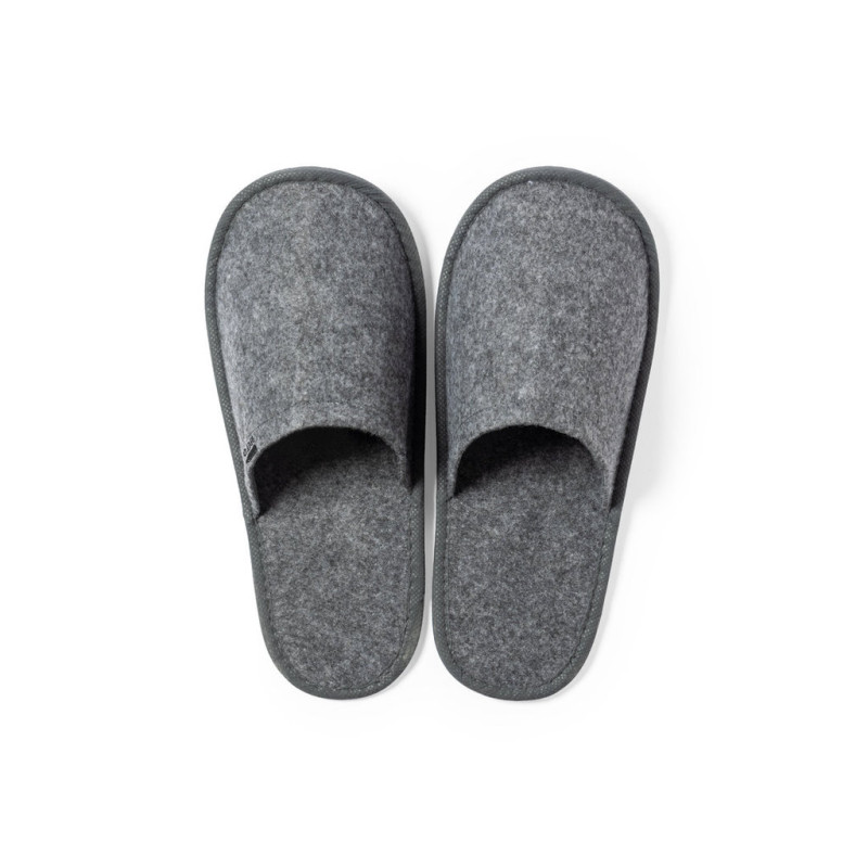 Par de chinelos unisexo. Fabricados em resistente feltro RPET, fruto da combinação do processo de reciclagem de materiais plásticos juntamente com a técnica milenária de fabricação do feltro, resultando um material de eco-tendência que, além de ser de origem reciclada, também se converte em reciclável. Interior confortável acolchoado com costuras de reforço e em tamanho único 36-43.
