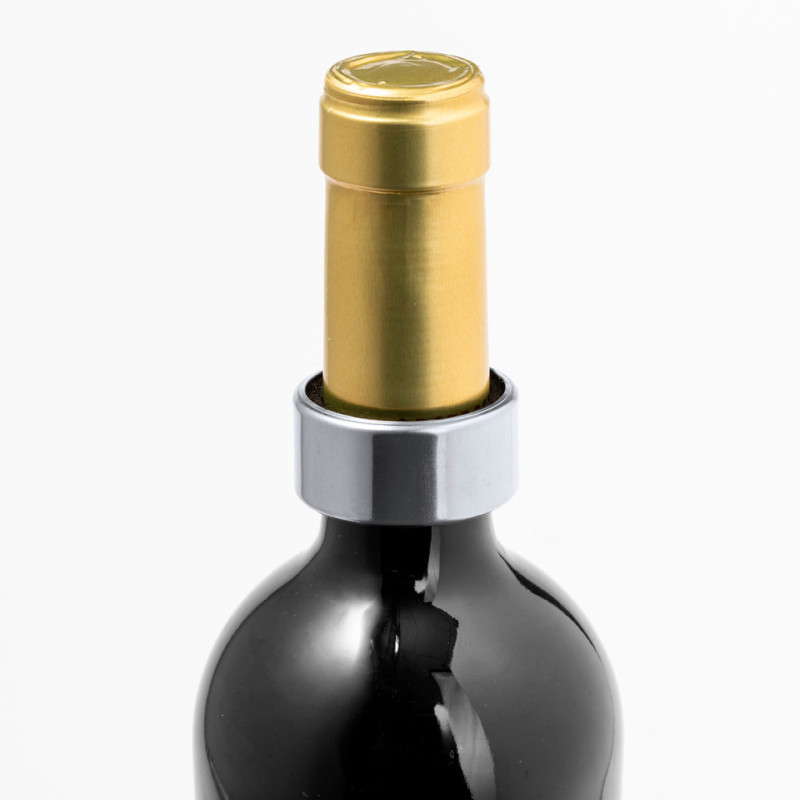 Prático recolhe-gotas em aço inox. Anilha adaptável ao gargalo da garrafa graças ao seu interior acolchoado e recoberto de veludo, para recolher a gota que sobra ao servir. Com exterior em brilhante aço inoxidável que o torna resistente. Apresentado numa caixa individual de design kraft.