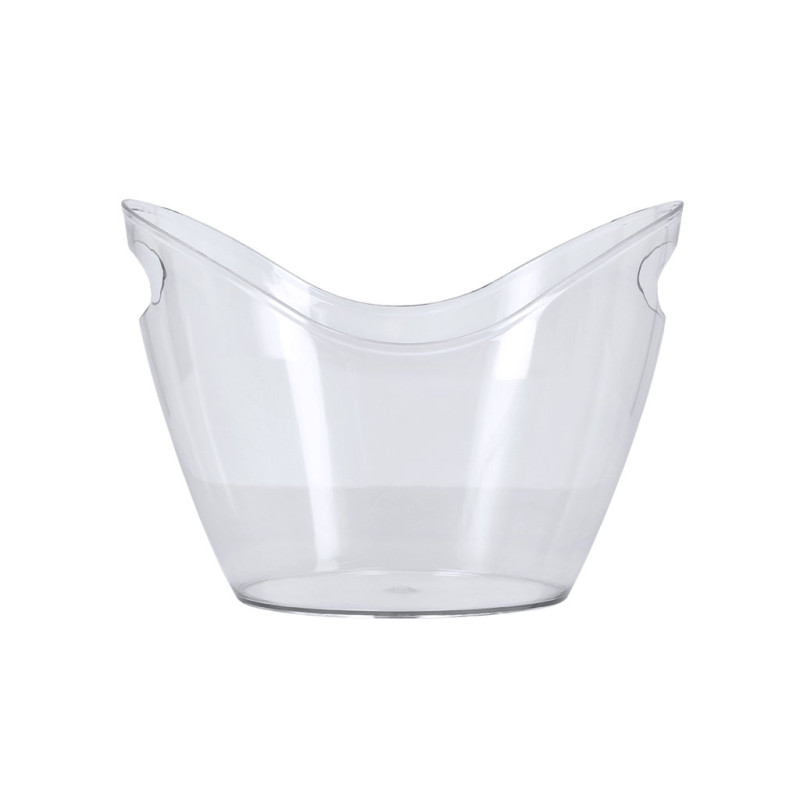 Elegante tabuleiro transparente para cubos de gelo com capacidade de 4 l, feito de PET resistente. Este acessório combina estilo e funcionalidade, mantendo as bebidas frias devido ao seu tamanho grande.