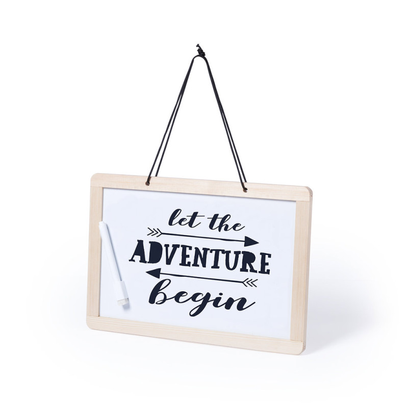 Placa suspensa dupla face. O quadro tradicional de um lado, com 3 panelas incluídos + placa de marcador no outro lado -incluído. Com borracha dupla face para giz ou caneta marcadora.